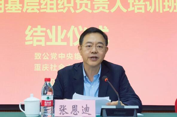 张恩迪向顺利完成培训课程的学员们表示祝贺,并对致公党重庆市委会和重庆社会主义学院给予的大力支持表示感谢。张恩迪指出,基层组织是致公党的组织基础和工作基础。致公党中央一向高度重视基层组织建设工作,专门制订中央基层组织联系点工作制度,并先后通过建立参政议政联系点、党员专家库、“书香支部”等,为基层组织党员参政履职搭建平台,取得了良好成效。为更好推进基层组织建设,致公党中央连续三年举办基层组织负责人培训班。此次第四期培训班,是中共二十大和致公党十六大召开以后举办的第一期基层组织负责人培训班,意义更为重要。张恩迪就学员们今后如何将学习成果转化为做好基层组织工作实践提出了要求。他强调,要将学习成果转化为加强思想政治建设的高度自觉,深刻领悟“两个确立”的决定性意义,增强“四个意识”、坚定“四个自信”、做到“两个维护”,进一步夯实多党合作的共同思想政治基础;要将学习成果转化为以章治党的能力素质,以“书香支部”为载体开展《中国致公党章程》宣讲,把好发展党员第一道关口,按照章程要求健全组织生活、完善组织制度、加强组织管理,不断提升自身建设水平;要将学习成果转化为推动工作的具体举措,创新基层组织活动的内容和形式,围绕中心工作、聚焦社会需求不断拓宽履职渠道、丰富履职内容,引导党员在了解基层实情、促进科技创新、推动国际文化交流和经贸合作等方面发挥作用,不断提高履职效能。