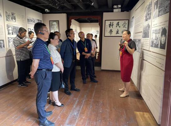 到了巴南,九三学社巴南区工委主委、巴南区人民法院副院长刘秀荣化身解说员,详细生动地介绍了吴藻溪生平事迹陈列馆展陈内容。在邀请学员移步参观时,她提出了一个问题:吴藻溪生平事迹陈列馆为什么选择在彭氏民居建设呢?她告诉大家,在抗日战争和解放战争时期,九三学社重要创始人吴藻溪及其夫人王克诚受中共中央南方局的委派,在彭氏民居创办了西南学院,后发展为中共重庆地下党宣传革命的讲台、培养人才的摇篮、隐蔽力量的据点。2019年九三学社中央将彭氏民居等地纳入九三学社重庆遗址群,命名为第二批“九三学社全国传统教育基地”。